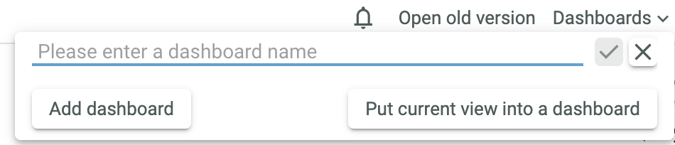 - Enter the desired dashboard name ( default in this example) and click the Save dasboard
